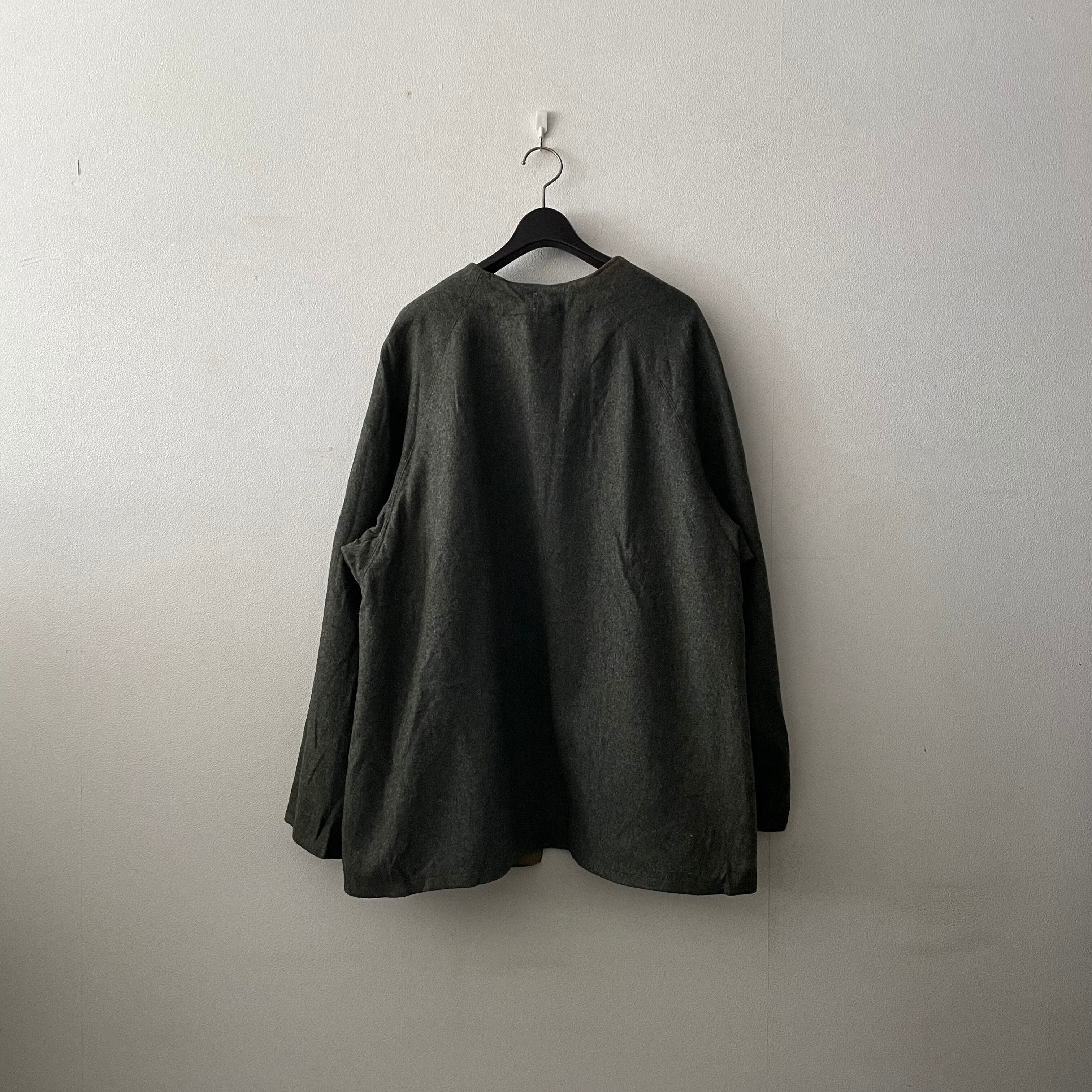 ミドル丈に美しい曲線のネックライン、単体で着ても上品なウールコートのようです