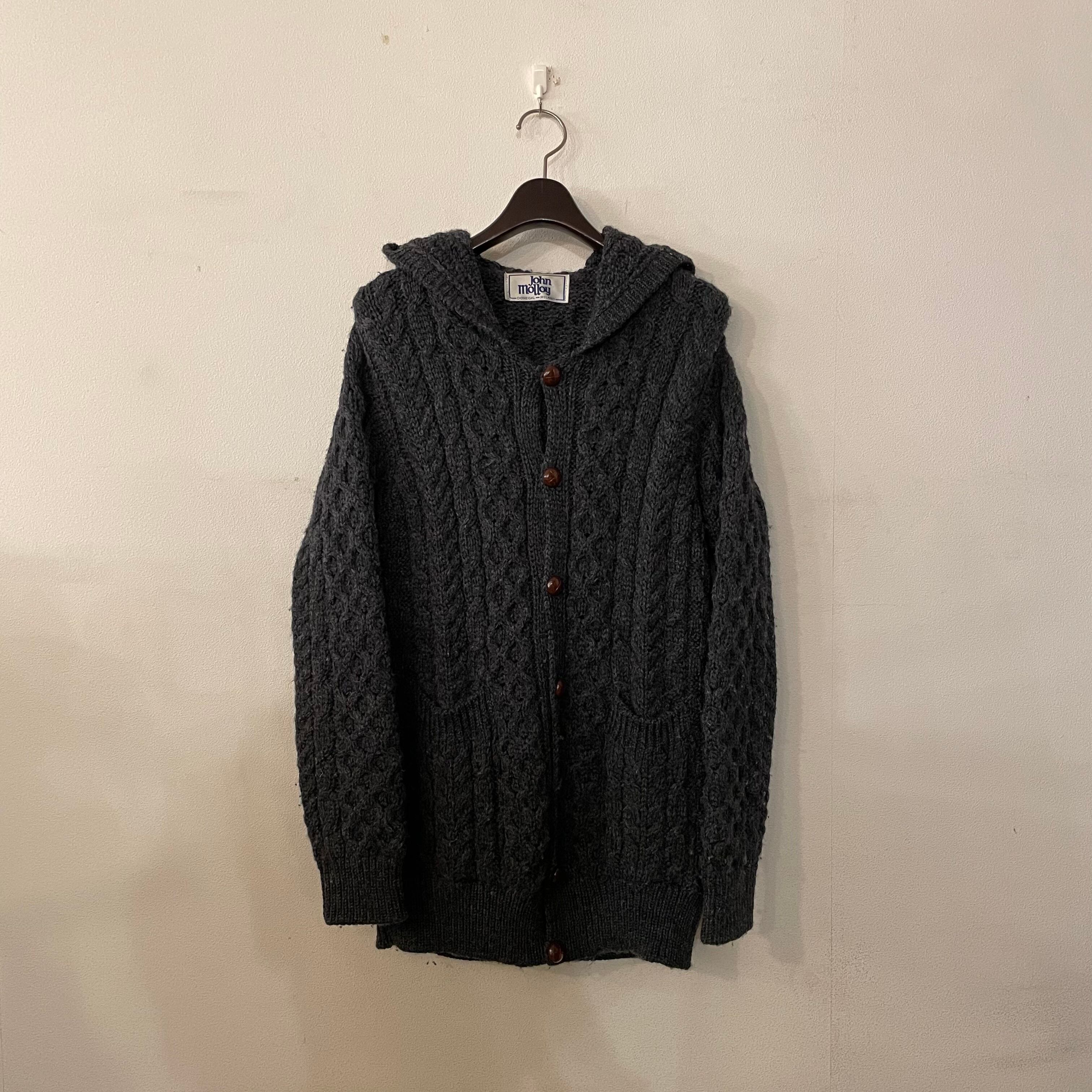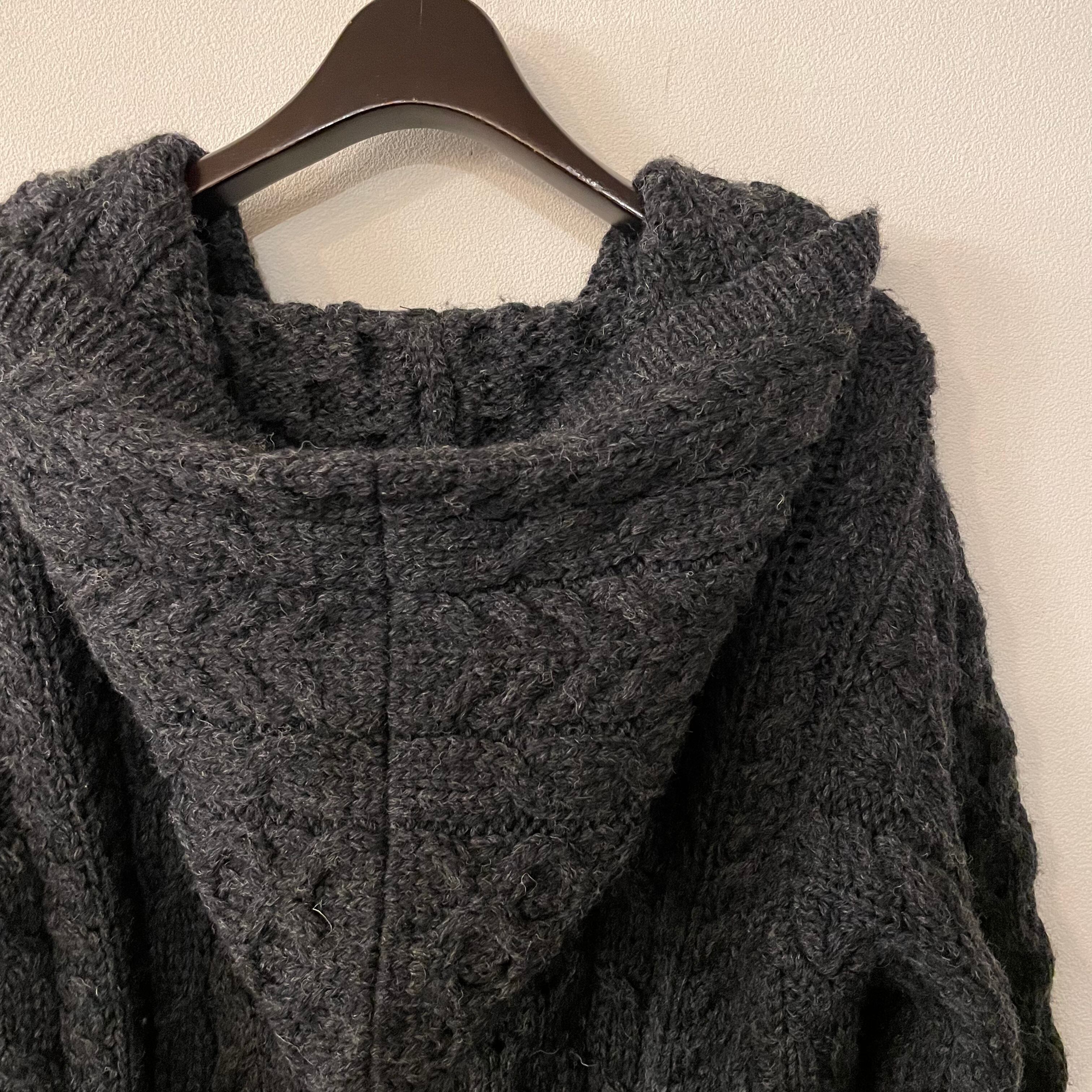 アランニットのフード付きカーディガン